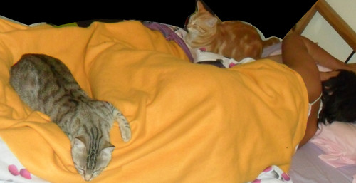 Os senhores do cabo vieram no dia e à hora marcada. Haviam pequenos montinhos de knick knacks espalhados um bocadinho por todo o lado - até parecia que eu ia fazer daquelas queimadas que se fazem nos terrenos... - e uma pilha de camisas do Vítor bem no meio da cama. A sala parecia um cenário do 'A Estrada', do Cormac McCarthy - passado num cenário de pós apocalipse... valeu-me a gata para distrair os técnicos (a Mia, que a Piccolina tem pavor de pessoas, e pufff, desaparece...). No entanto, para mim que fucei ali que nem uma condenada, a diferença é abissal - como os outros, os-que-não-fuçaram-mas-vivem-debaixo-do-mesmo-teto, comprovam. A secretária, por decisão do cônjuge (dado que é ele que vai alambar com ela) vai ser mudada amanhã. E aí, ai-ai-ai, que vou ficar com a caixa ATI e todos os cabos que dela saem (e não saíam...) 'a céu aberto'. Até comprar a p*t@ da cadeira aquilo é aterrorizador. Acho que vou comprar uma tela e atirar-lhe com uns salpicos de tinta, por forma a encostar e tapar aquele emaranhado, sei lá... mas de certeza que vou arranjar um daqueles enroladores de cabos em espiral, para conter o caos ao mínimo... arrghhhh!!