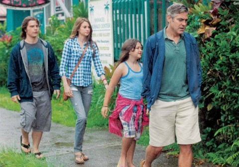Mas em primeiro plano, a mulher do mesmo tem um acidente que a põe em coma. Matt, mais ligado ao trabalho que à família nuclear, tenta reagrupar a ninhada - duas filhas + um amigo da filha mais velha que se cola aos três (li algures que só quem leu o livro consegue perceber o porquê da sua presença...), enquanto tenta desesperadamente gerir as emoções da descoberta de que Elizabeth o traía. Clooney demonstra neste desempenho uma contenção permanente e brilhante, além de nos conseguir convencer que é uma pessoa real e normal, igual ao nosso vizinho do lado, que consegue racionalizar sem passar por cima das suas emoções, e tomar as decisões certas sem perder o pé - nem a cabeça - dando prioridade ao que é realmente importante e conseguindo o que no início parecia não só difícil como improvável: formar uma nova e consistente família de três... bem, mais um...
