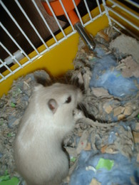 - entrementes, hoje, estando eu, como já referi, de robe vestido, a Carina descobriu que era um sítio giro para fazer de túnel, e não muito depois a Chiara imitou a irmã. Pronto, 20 minutos na brincadeira, e agora, gaiola limpa, algodão "comestível" novo e um super tubo de cartão para fazerem os túneis novos. Temos neurose até à noite/os túneis estarem de profundidade para se taparem/esconderem/aquecerem.