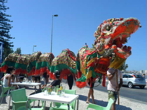 E ainda para mais ontem tinha havido uma regata (que não vi já que não soube, mas ao fim de semana, tanto ao sábado como ao domingo, há sempre animação), que contava com a participação (não me perguntem porquê) da Delegação de Turismo de Macau, por isso derreti-me toda com o dragão que se passeava entre nós: